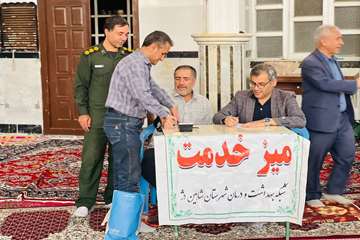 در حاشیه این میز خدمت حجه الاسلام مرادی امام جمعه شهرستان از نزدیک در روند اجرای این برنامه قرار گرفت و ضمن عرض خدا قوت به همکاران از تلاش های مجموعه شبکه بهداشت و درمان در راستای حفظ و ارتقای سلامت عموم مردم قدردانی به عمل آورد.