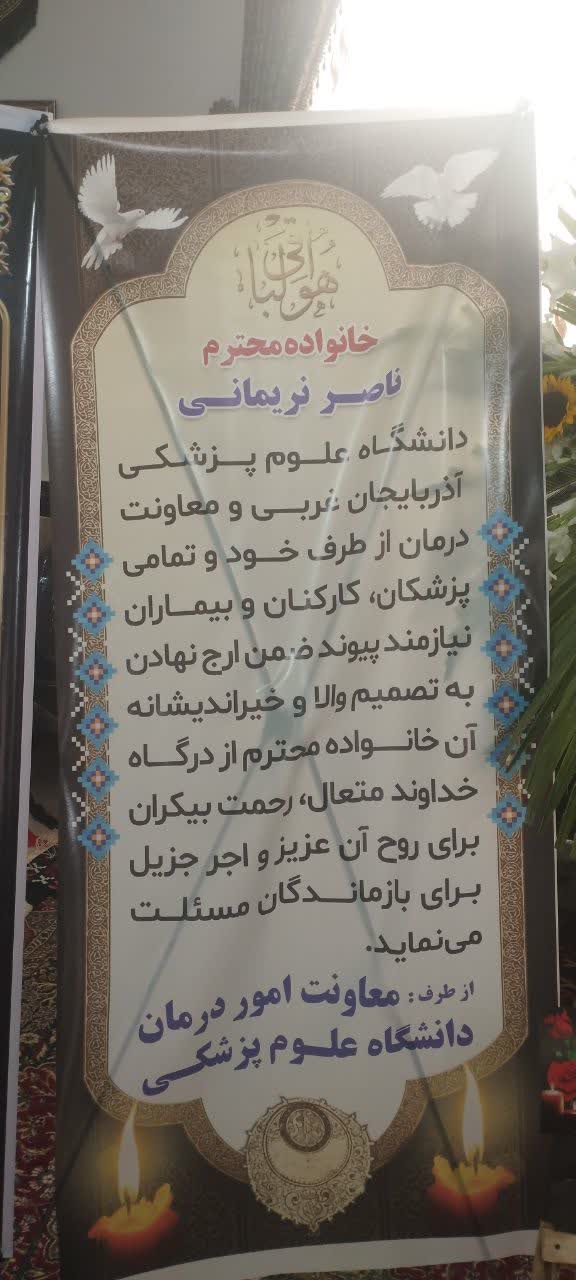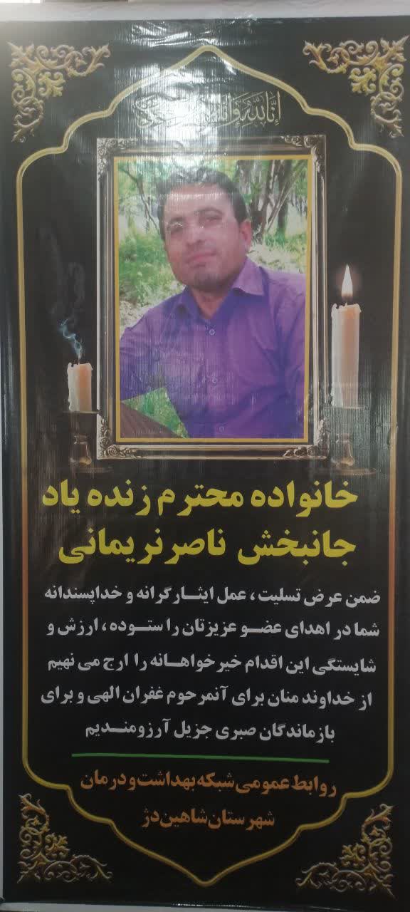 در بخشی از این مراسم، لوح تقدیری به نمایندگی از مجموعه شبکه بهداشت و درمان به خانواده محترم آن مرحوم اهدا شد. این لوح، نمادی از دلجویی، قدردانی و احترام به روح بزرگ جانبخش نریمانی بود که در اقدامی انسان‌دوستانه، اعضای بدن خود را به سه خانواده نیازمند اهدا کرده بود و با این کار، زندگی دوباره‌ای به آنان بخشید.